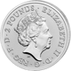 Die Silbermünze stellt ihn aufrecht mit Bart und langem Haar dar, während der Hintergrund auf den Wald als Lebensraum für die Baden verweist. Darüber ist zu lesen „LITTLE JOHN„, „1OZ„, „FINE SILVER„, „999“ und „2022“ als übliche Angaben. Die Rückseite stellt die Königin Elizabeth II. mit den Angaben „2 POUNDS„, „ELIZABETH II„, „D„, „REG F D“ dar.