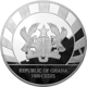 Die Rückseite zeigt Ihnen das Wappen der Republik Ghana, das von zwei detailliert gezeichneten Adlern gehalten wird. Auch das Jahr 2022 ist in das Feinsilber eingeprägt.