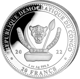 Auf der Rückseite sieht man das Wappen der Demokratischen Republik Kongo. Dieses besteht aus einem Leopardenkopf, zwei Elefantenstoßzähnen sowie einem Speer. Die französischen Wörter Justice (Gerechtigkeit), Paix (Frieden) und Travail (Arbeit) gehören ebenfalls zu dem Wappen. Des Weiteren ist Nennwert der Münze angegeben sowie deren Prägejahr, Stückelung und Feinheit