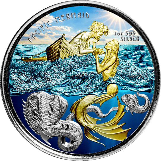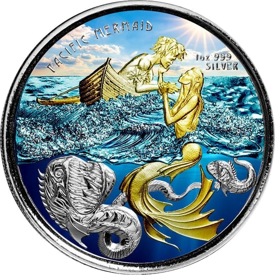 Diese teilvergoldete Silbermünze ist die zweite Ausgabe der Mermaid-Serie, die von der amerikanischen Prägeanstalt Scottsdale Mint herausgebracht wurde. Die Münze wurde im Nach­hi­n­ein durch Färbung und Vergoldung ganz speziell durch ein renommiertes Institut veredelt.