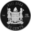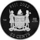 Auf der Rückseite der Münze ist das Wappen Fidschis eingeprägt, genauso wie diverse Daten zur Münze: das Prägejahr (2022), die Stückelung (1 Unze), der Nennwert (50 Cent) und die Feinheit (999).