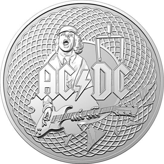 Die Motivseite dieser Silbermünze zeigt den schottisch-australischen Gitarristen Angus Young inmitten eines Konzertauftritts. Im Hintergrund wird ein Globus angedeutet. Schließlich gründete Angus zusammen mit seinem Bruder Malcolm im Jahr 1973 die weltweit bekannte und beliebte Hard-Rock Band AC/DC. Die Abkürzung AC/DC kommt aus dem Englischen „Alternating Current/Direct Current“, was zu Deutsch „Wechselstrom/Gleichstrom“ bedeutet. Gemeinsam mit seinen Bandkollegen hat der Leadgitarrist Angus Young schon die ganze Welt bereist und Millionen von Menschen mit seinen Auftritten und seiner Musik begeistert.