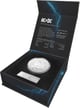 Diese Münze wird nicht nur in einer Münzkapsel verschickt, sondern noch dazu in einem exklusiv für die Münze entworfenen Original-Etui. Dieses ist klassisch schwarz und wurde mit eisblauen Blitzen und dem Namen der Band verziert.