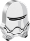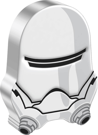 Geprägt von der New Zealand Mint, bildet die limitierte 1 Unze Silber First Order – Flametrooper™  Münze die Form des ikonischen Helms des Flametroopers™ in originalgetreuen Farben ab. In höchster Qualität verewigt die Anlagemünze die beispiellose Form des Helms detail stark in einer Komposition mit schwarz silber Farben. Nicht allein der 2 AUD-Nennwert, sondern auch die stilvoll und unachahmliche Umrandung der Münze wirkt einzigartig auf alle Silber-Anleger. Das Motiv zeigt die atemberaubende Form des ikonischen Helms des Flametroopers™. Auf der Rückseite der lizenzierten Lucasfilm Ltd.™ Münze ist das Porträt der verstorbenen Königin Elizabeth II, sowie der Nennwert, das Feingehalt und das Ausgabejahr abgebildet.