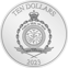 Die Wertseite der Münze zeigt das Siegel von Niue. Unter dem Siegel wird zudem das Prägejahr angegeben: 2023. Und über dem Siegel steht der Nennwert. Dieser beträgt zehn Dollar.