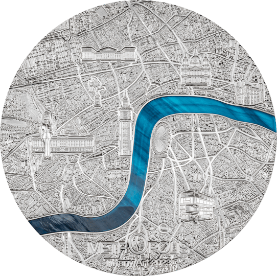 1kg Silber Tiffany Art Metropolis London 2023 PP HR (Auflage: 99 | Ultra High Relief | Polierte Platte)