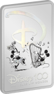 Es ist einfach unglaublich, dass Disney™ einmal mit nichts anderem als einer Maus angefangen hat. Mickey Maus™. Aus diesem Grund sind auf der Motivseite dieser rechteckigen Münze auch Mickey Maus™ und seine Frau Minnie abgebildet. Mickey spielt fröhlich auf einer Harfe und Minnie tanzt fröhlich zur Musik. Sie hält einen Blumenstrauß in der Hand.