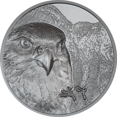 High Relief Design: Beeindruckende, detailreiche Darstellung des Sakerfalken in Black Proof Qualität