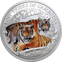 Das Herzstück dieser Münze bildet die Vorderseite mit dem farbenfrohen und lebendigen Motiv zweier Tiger, die inmitten der Wildnis Kambodschas ruhen. Die detaillierte und realistische Darstellung der Tiere, in Kombination mit dem hochwertigen Colorierungsverfahren, hebt die Dynamik und die natürliche Anmut dieser majestätischen Geschöpfe hervor. Der Schriftzug "LOST TIGERS OF CAMBODIA" und die Angabe "1 OZ 999 FINE SILVER" unterstreichen die Besonderheit dieses Sammlerstücks.