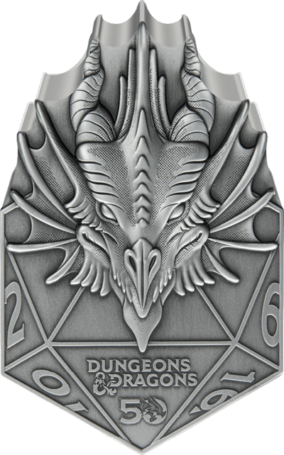 Entdecken Sie die Magie von Dungeons & Dragons™: Die 2 Unze Silber Red Dragon D20 Münze