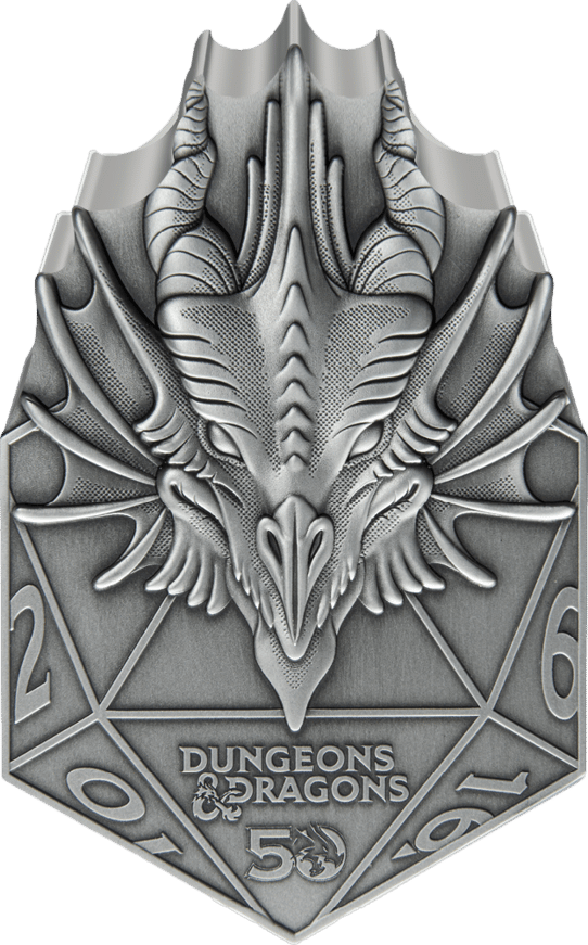 Die Rückseite der Münze zollt ebenfalls dem legendären Spiel Tribut, indem sie Elemente des klassischen polyedrischen D20-Würfels aufgreift. Umgeben von dieser Hommage an das Spiel finden Sammler und Liebhaber das offizielle Wappen von Niue, den Nennwert von 5 Niue-Dollar und das Prägejahr 2024, was die Münze auch als gesetzliches Zahlungsmittel qualifiziert.