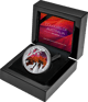 Das atemberaubende Motiv zeigt drei colorierte Kängurus, die entspannt vor der malerischen Kulisse eines australischen Berges sitzen. Dieses Bild, welches die einzigartige Flora und Fauna des Kontinents repräsentiert, ist ein Symbol für die wilde und ursprüngliche Natur des "Red Centre", des roten Herzens Australiens. Die Rückseite der Münze ziert das Portrait von King Charles III., umgeben von den Inschriften "ONE DOLLAR", "1OZ 999 SILVER" und "NIUE 2024".