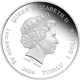 Auf der Rückseite der Münze wird die Ehrerbietung mit einem Porträt Ihrer Majestät Königin Elizabeth II. fortgesetzt, flankiert von den Jahreszahlen ihrer Regentschaft, dem Nennwert von 1 Tuvalu-Dollar, der Feinheit und dem Ausgabejahr 2024. Dieses Bildnis unterstreicht die königliche Würde und die offizielle Anerkennung, die diese Münze genießt.
