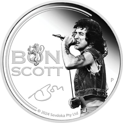 Ein Tribut an die Rocklegende: 1 Unze Silber AC/DC Bon Scott 2024 PP