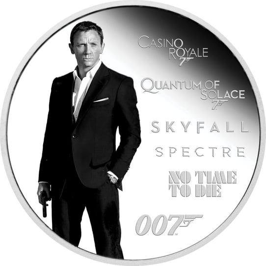 Präsentiert von der renommierten Perth Mint, repräsentiert diese Münze die höchstmögliche Prägequalität „Polierte Platte“. Das Motiv zeigt eine stilvolle schwarz-weiß Darstellung von Daniel Craig als James Bond in einer seiner legendären Posen. Umrundet wird das Bild von dem ikonischen 007-Pistolenlogo sowie den Logos der fünf Bond-Filme, in denen Craig die Hauptrolle spielte. Diese reichen von "Casino Royale" bis hin zu "No Time To Die", markieren eine Ära und unterstreichen die Bedeutung dieses kulturellen Phänomens.