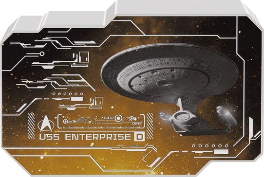 Detailreiche Prägung: Detaillierte Darstellung der USS Enterprise NCC-1701-D in Farbe und höchster Prägequalität
