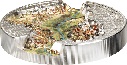 High Relief Prägung: Die dreidimensionale Darstellung des Rheintals sorgt für eine faszinierende Optik