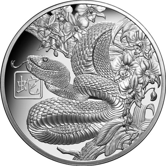 Das Motiv dieser Münze zeigt eine äußerst detailreiche Darstellung einer Schlange, die sich majestätisch inmitten floraler Elemente windet. Die feinen Strukturen und die präzise Darstellung machen diese Münze zu einem wahren Kunstwerk. Ergänzt wird das Motiv durch das chinesische Schriftzeichen für "Schlange", was die kulturelle Bedeutung und den künstlerischen Wert dieser Münze unterstreicht. Auf der Rückseite finden Sie das Porträt von König Charles III, das Ausgabejahr, den Nennwert, das Gewicht und die Feinheit der Münze.