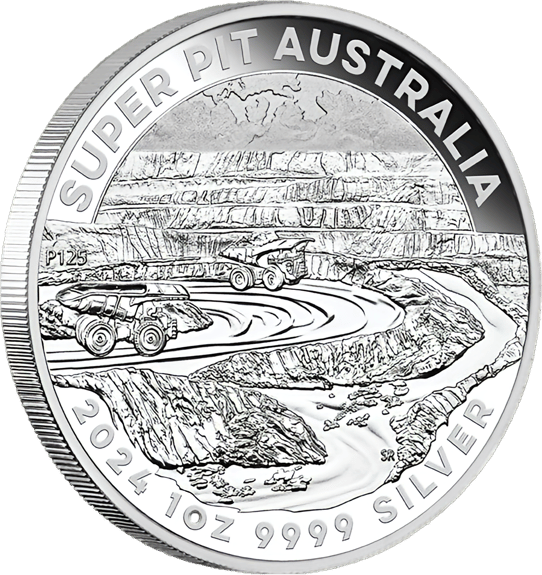 Die Münze besteht aus 999/1.000 Feinsilber und hat ein Feingewicht von 31,10 Gramm (1 Unze). Mit einem Durchmesser von 40,90 mm und einer Dicke von 3,50 mm liegt sie angenehm in der Hand und beeindruckt durch ihr detailreiches Design. Die Vorderseite zeigt die Super Pit Goldmine, eine der größten und bekanntesten Goldminen der Welt. Diese Darstellung ist nicht nur ein Kunstwerk, sondern auch ein Tribut an die reiche Bergbaugeschichte Australiens.