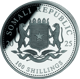 Die Rückseite ziert das traditionelle Wappen Somalias, umrahmt von der Landesbezeichnung "Somali Republic", dem Prägejahr 2025 und dem Nennwert von 100 Shilling. Die prägefrische Münze wird in einer schützenden Münzkapsel geliefert, die ihre Schönheit dauerhaft bewahrt.