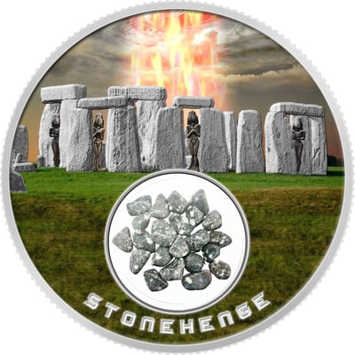 Echtes Stonehenge-Gestein: Diese einzigartige Silbermünze enthält original Preseli-Blaustein aus Wales - dasselbe Material, aus dem das mystische Stonehenge erbaut wurde
