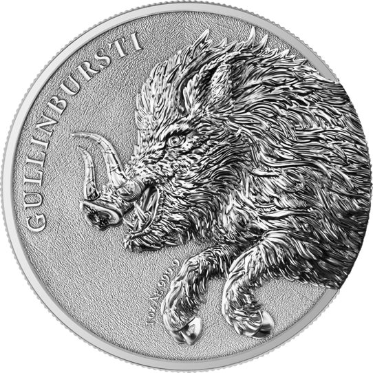 Faszinierendes Münzdesign: Der majestätische Gullinbursti aus der germanischen Mythologie wurde in höchster Prägequalität mit beeindruckenden Details über beide Münzseiten verewigt