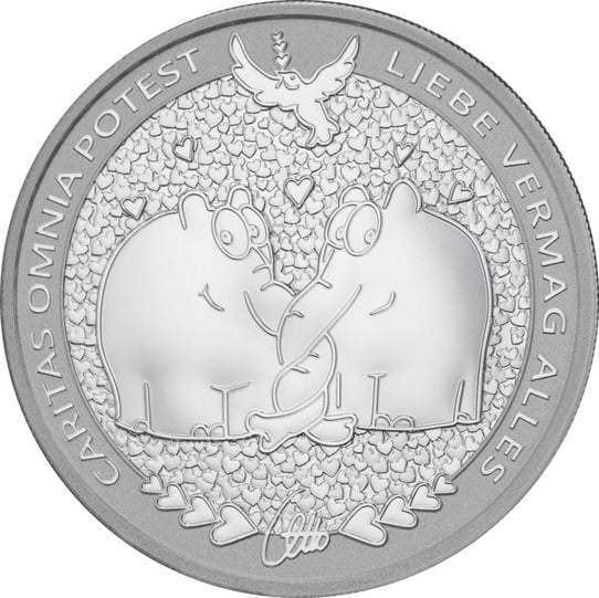 Emotionales Geschenk: Das liebevolle Design mit zwei verliebten Ottifanten, umgeben von filigranen Herzen, macht diese Münze zum perfekten Präsent für besondere Anlässe