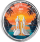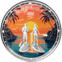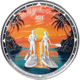 Karibisches Kunstwerk in Feinsilber: Brillante Farbapplikation zeigt ein romantisches Paddleboard-Paar im traumhaften Sonnenuntergang - geprägt von der renommierten Scottsdale Mint