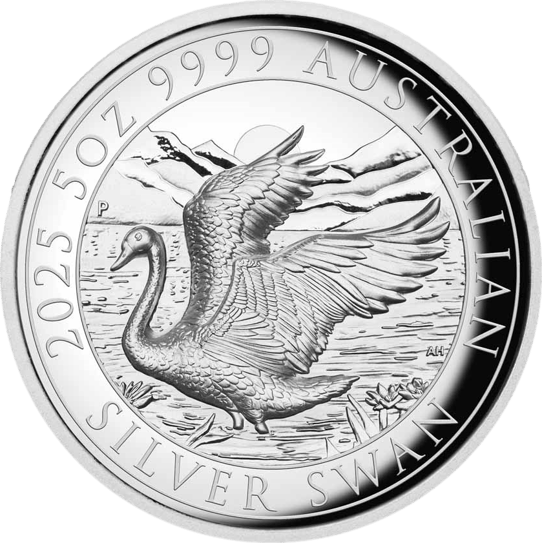 5 Unze Silber Perth Mint Schwan 2025 (Auflage: 500 | Polierte Platte | High Relief)