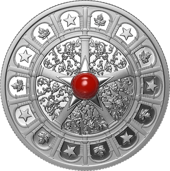 Polierte Platte mit rotem Korallen-Akzent - ein Meisterwerk der Royal Canadian Mint