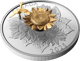 Meisterhafte Teilvergoldung: Die goldene Sonnenblume in Kombination mit silbernen Blüten und der schwebenden Goldbiene macht jede Münze zu einem einzigartigen Kunstwerk