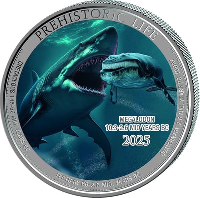 1 Unze Silber Prehistoric Life Megalodon 2025 (Auflage: 2.000)