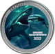 - Spektakuläres Megalodon-Motiv in Farbbrillanz auf reinstem 999,9er Silber geprägt