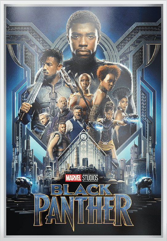 Meisterhafte Prägekunst: 1,5 Unzen reinstes 999er Silber in höchster Qualität "Polierte Platte" vereint mit dem ikonischen Black Panther Filmplakat in brillanter Farbgestaltung