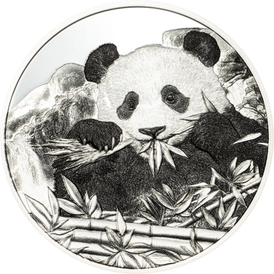 Meisterhafte Prägekunst in Polierter Platte: Höchste Prägequalität PP mit spiegelndem Hintergrund und gestochen scharfen Details macht jeden Panda und jedes Bambusblatt zum künstlerischen Erlebnis
