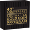 Die Münze wird in der edlen Originalverpackung der Perth Mint geliefert. Wie auf den Bildern zu erkennen, ruht sie geschützt in einer transparenten Präsentationsbox mit schwarzem Samtinterieur und dem ikonischen Schwan-Logo der Perth Mint. Die äußere Umverpackung in Schwarz mit goldener Schrift – „40th Anniversary of the Australian Gold Coin Program" – unterstreicht den Jubiläumscharakter eindrucksvoll. Ein Gesamtpaket, das sowohl im Tresor als auch in der Vitrine eine hervorragende Figur macht.