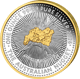 Reinstes 999,9er Silber in Polierter Platte, veredelt mit 24-Karat-Teilvergoldung auf dem legendären Nugget-Motiv