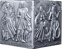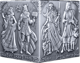 Das Antik Finish ist weit mehr als eine Oberflächenbehandlung. Es ist eine Zeitreise. Die gezielte Patinierung verleiht dem Silberwürfel jene dunkle, geheimnisvolle Anmutung, die an ein uraltes Artefakt erinnert – als hätte man ihn gerade erst aus einer vergessenen Schatzkammer der Wikinger geborgen. Die Konturen der Gottheiten treten dadurch noch plastischer hervor, Licht und Schatten spielen auf den erhabenen Reliefs, und jedes Detail – von den keltischen Knotenbändern an den Rändern bis zu den Runeninschriften am Fuß jeder Seite – gewinnt an Tiefe und Dramatik.