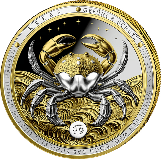1 Unze Silber Sternzeichen Krebs 2026 (Auflage: 250 | teilvergoldet | Polierte Platte)