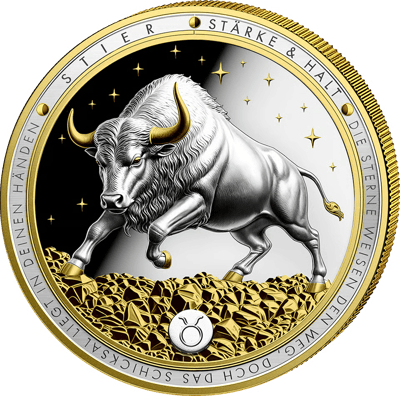 1 Unze Silber Sternzeichen Stier 2026 (Auflage: 250 | teilvergoldet | Polierte Platte)