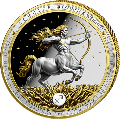 1 Unze Silber Sternzeichen Schütze 2026 – eine teilvergoldete Rarität in Polierter Platte