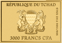 - Herkunftsland: Republik Tschad, verewigt durch das Wappen auf der Vorderseite