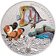 Die Motivseite der auf nur 999 Exemplare streng limitierten Silbermünze ist aufwendig coloriert. Sie sehen ein buntes Korallenriff, einen Kupferstreifen-Pinzettfisch sowie einen Clownfisch und zwei weitere Fische. Die Kolorierung ermöglicht eine detailreiche Darstellung der Unterwasserwelt.