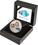 Die kolorierte Silbermünze wurde aus einer Unze 999/1.000 Feinsilber geprägt und ist einem der bekanntesten Wahrzeichen Australiens gewidmet – dem Great Barrier Reef. Auf dem Motiv stehen ein Kupferstreifen-Pinzettfisch, einen Clownsfisch und wunderschöne Korallen – repräsentativ für die Schönheit der australischen Unterwasserwelt. Als Besonderheit wurde zusätzlich eine echte Salzwasserperle in das Motiv integriert. Der Schriftzug „GREAT BARRIER REEF“ komplettiert das Design. Auf der Rückseite befinden sich Gewicht, Feinheit , Nennwert und Ausgabejahr.