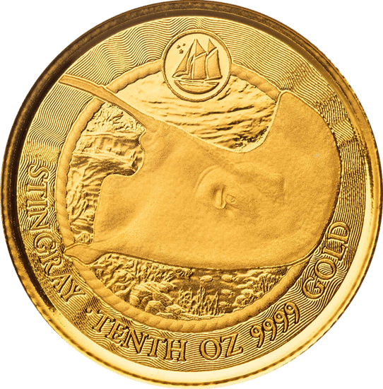 Entdecken Sie die glänzende Rarität: 1/10 Unze Gold Cayman Islands Stachelrochen 2023
