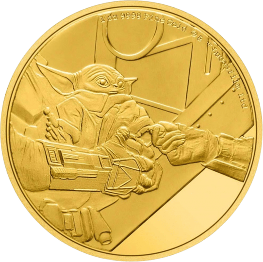 Die strenge Limitierung von nur 250 Exemplaren weltweit ermöglicht langfristige Wertsteigerungen dieser Münze. Am oberen Rand befindet sich die Angabe von einer Unze 999,9er Feingold. Auch das offizielle Copyright von Lucasfilm Ltd.™ ist zu sehen. Auf der Rückseite der Münze befindet sich ein Porträt von Queen Elizabeth II., der Nennwert von 250 Dollar, das Ausgabeland Niue sowie das Ausgabejahr 2022.