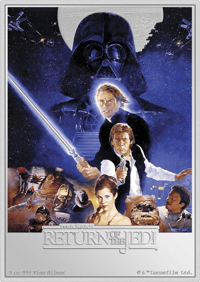 5 Unze Silber Rückkehr der Jedi-Ritter Star Wars Posters 2023 PP (Auflage: 200 | coloriert | Polierte Platte)