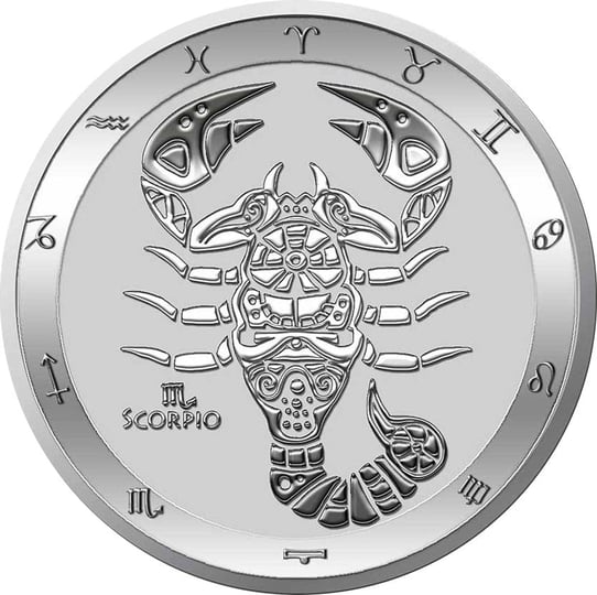 Auf der Motivseite der Silbermünze ist ein Skorpion eingeprägt. Das Motiv wurde außergewöhnlich und mit einzigartigen Elementen gestaltet. Um das Motiv kreisen die astrologischen Symbole der zwölf Sternzeichen.
