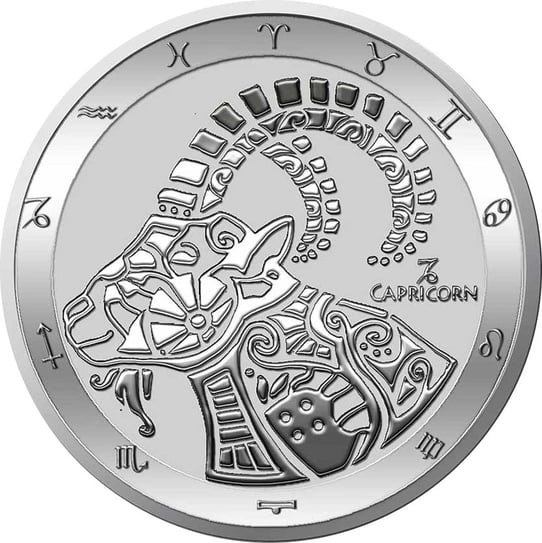 Als Motiv für diese Silbermünze dient der Steinbock. Genauer gesagt das Profil des Tieres. Diese Münze ist nämlich dem Sternzeichen „Steinbock“ gewidmet. Aber auch die anderen Sternzeichen wurden mit diesem Münzmotiv geehrt, nämlich in Form von astrologischen Symbolen.
