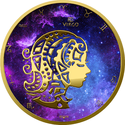 Die Münze ist aus reinem 999/1.000 Silber gefertigt und beidseitig teilvergoldet. Mit einem Durchmesser von 38,60 mm und einem Feingewicht von 31,10 g liegt sie angenehm in der Hand. Jedes Detail der Münze ist präzise geprägt und die Vergoldung unterstreicht die feinen Konturen des Sternbildes Jungfrau.